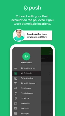 Manage and view schedules in real-time, streamline communication between managers and staff, and request time off or shift swaps with the Push Employee App.