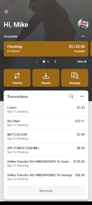 Set up alerts so you know when your balance drops below a certain amount Make payments, whether you’re paying a company or a friend Transfer money between your accounts Enrolled Mobile Deposit Customers can deposit checks in a snap by taking a picture of the front and back Secure your account with a 4-digit passcode or biometric on supported devices.