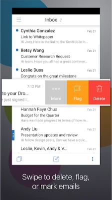 Secure Mail offers a rich and customizable experience on your mobile device. With XenMobile, you can also manage the app with security policies that suit your organization's needs.