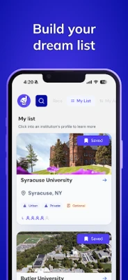 - Share your progress. Send a snapshot of your top schools and preferences to parents, counselors, or mentors with one tap.