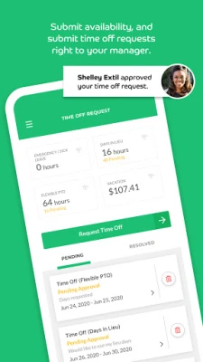 • Mobile access to clock ins, schedules, time off and shift swap requests. • Real-time schedule change notifications. • Daily schedule updates for scheduled employees. • Submit time-off requests and weekly availability. • Shift swap and release functionality for employees. • Message Center for manager and employee communication.